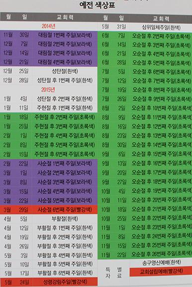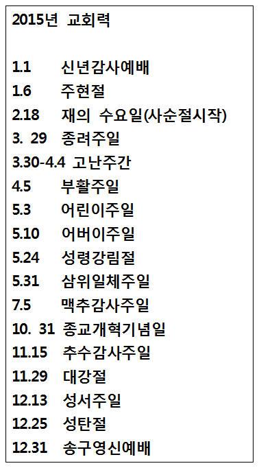 2015년 교회력과 절기표
