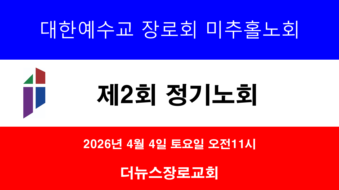 미추홀노회의 2026년 2회 정기노회가 4월 4일 우리교회에서 개최 됩니다.